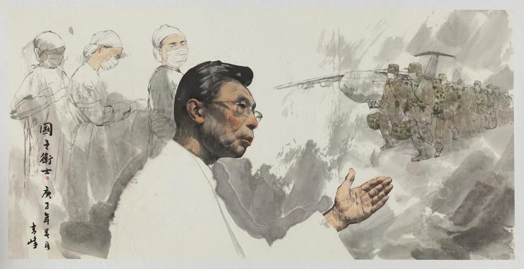 据悉,在2020年疫情期间,封闭在家的徐青峰因没有油画材料,无奈翻出之前的中国画材料尝试国画创作。有感于一批批医护人员、国之卫士舍生忘死、义无反顾投身于疫情防控,徐青峰用自己的真情实感和手中画笔,创作的《国之卫士——钟南山》《李兰娟》《争分夺秒战疫情》(已被国家博物馆收藏)《绽放——护士系列》等作品,是对这些英雄人物最形象最生动的记录,也是对这场伟大的疫情防控阻击战的真实再现,更是艺术家为时代画像、为时代立传、为时代明德的鲜明体现。