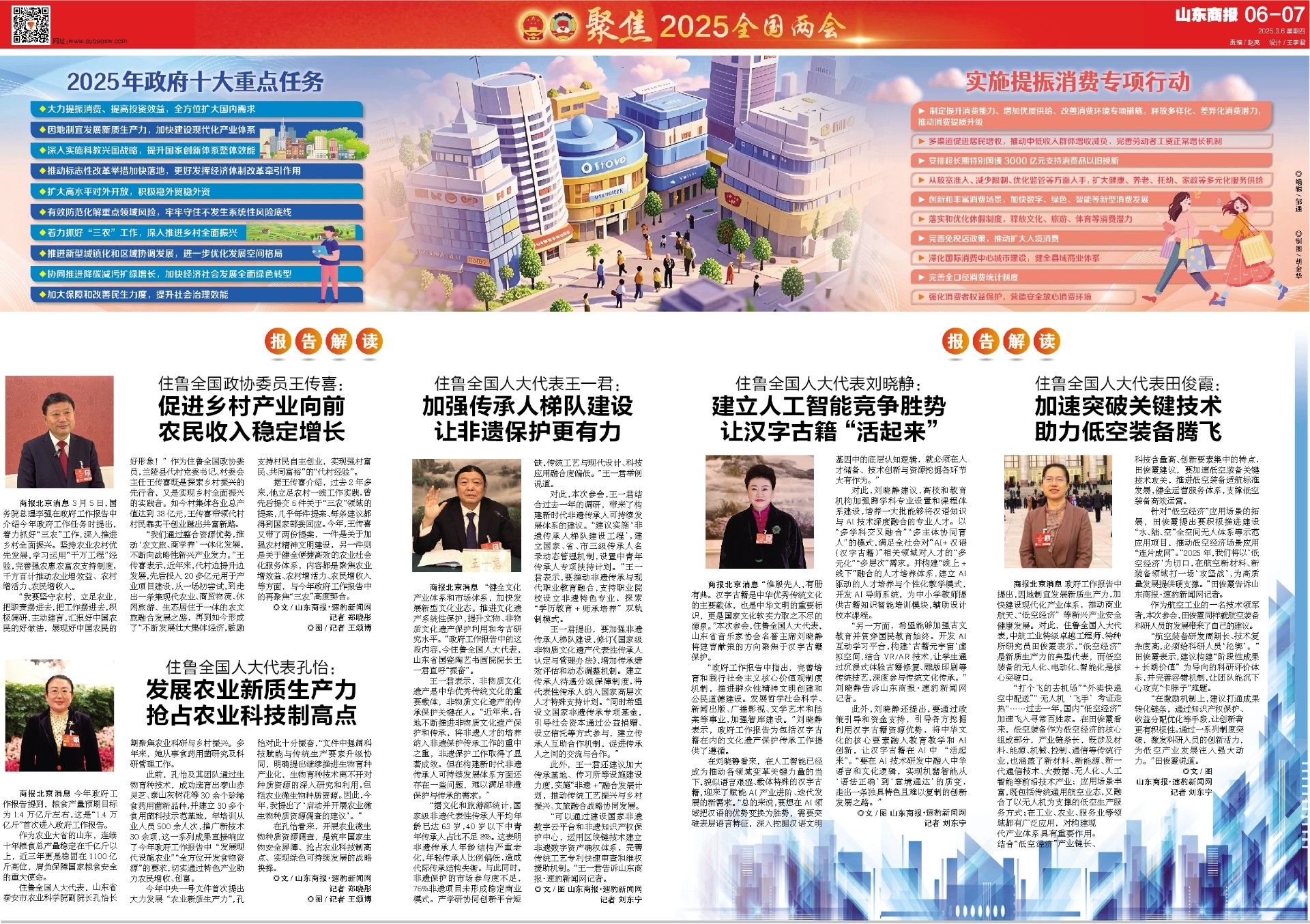 【山东商报】住鲁全国人大代表刘晓静:建立人工智能竞争胜势 让汉字古籍“活起来”